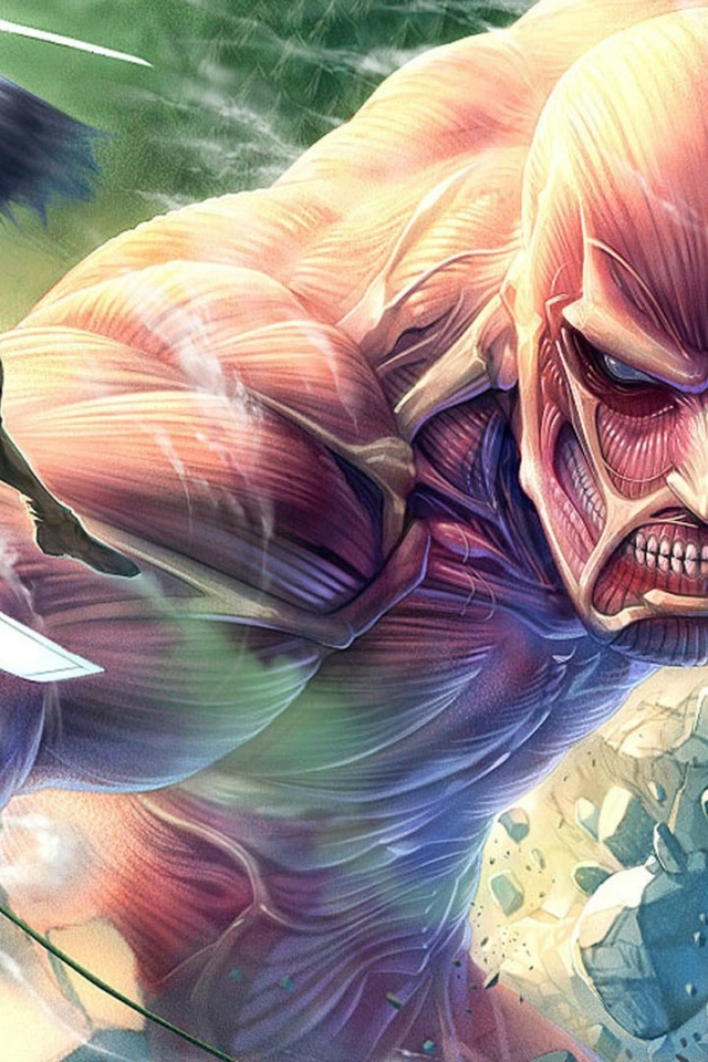 Скачать обои с разрешением 640x960. Картинки аниме, вторжение титанов, атака титанов, колос, колоссальный титан, эрен йегер, битва бесплатно на рабочий стол Скачать в другом разрешении: