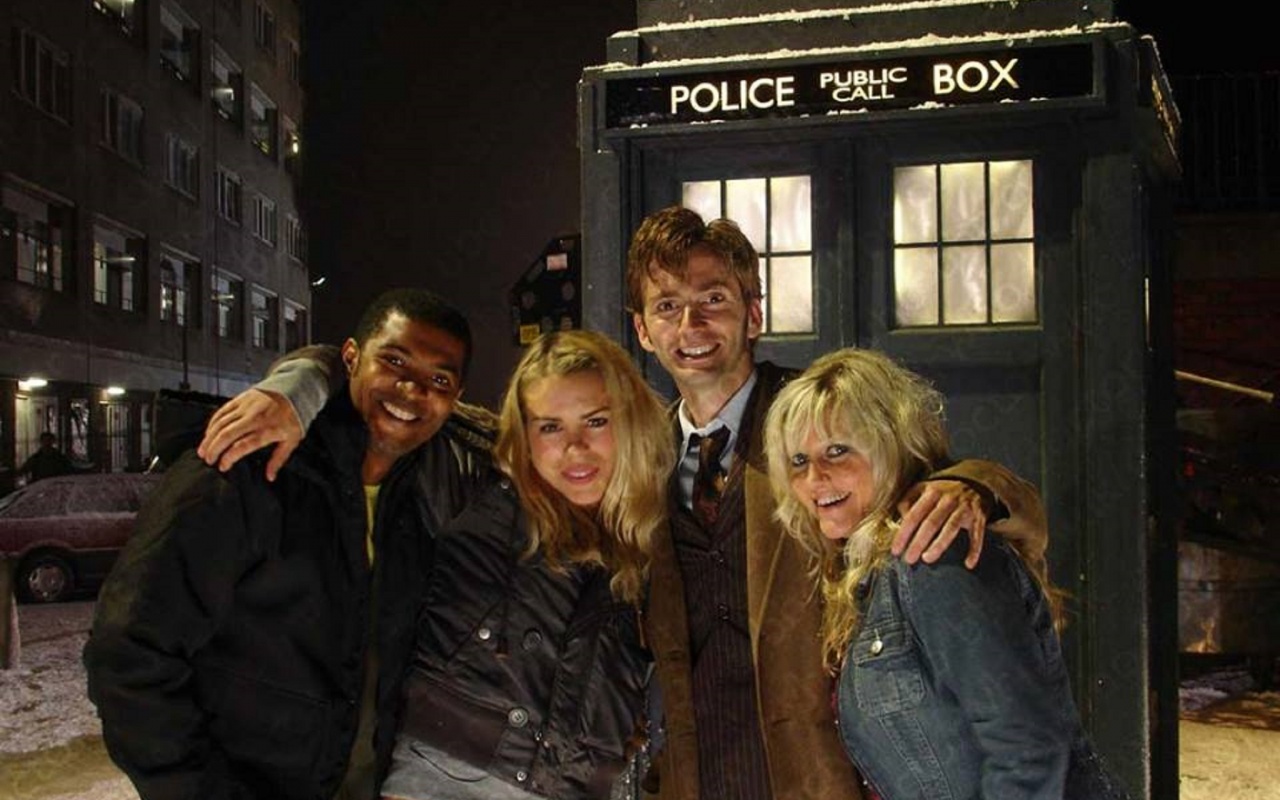 Скачать обои с разрешением 1280x800. Картинки десятый доктор, десятый, доктор, роуз, роуз тайлер, джеки, джеки тайлер, микки, микки смит, тардис, рождество, доктор кто бесплатно на рабочий стол Скачать в другом разрешении:
