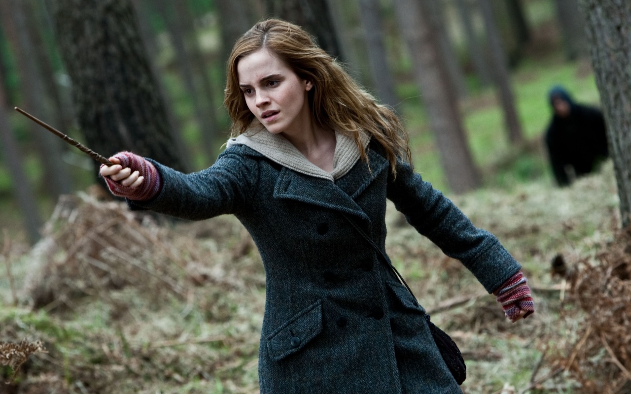 Скачать обои с разрешением 1280x800. Картинки гермиона грейнджер, эмма уотсон, волшебная палочка, гпидс бесплатно на рабочий стол Скачать в другом разрешении: